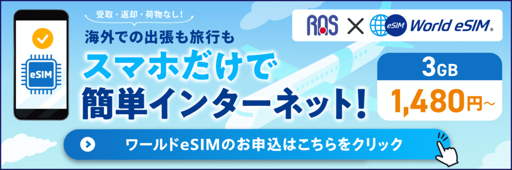 Wi-Fiを借りるほどじゃないけど、ネットは使いたい・・・そんなあなたには「World eSIM」がオススメ!!